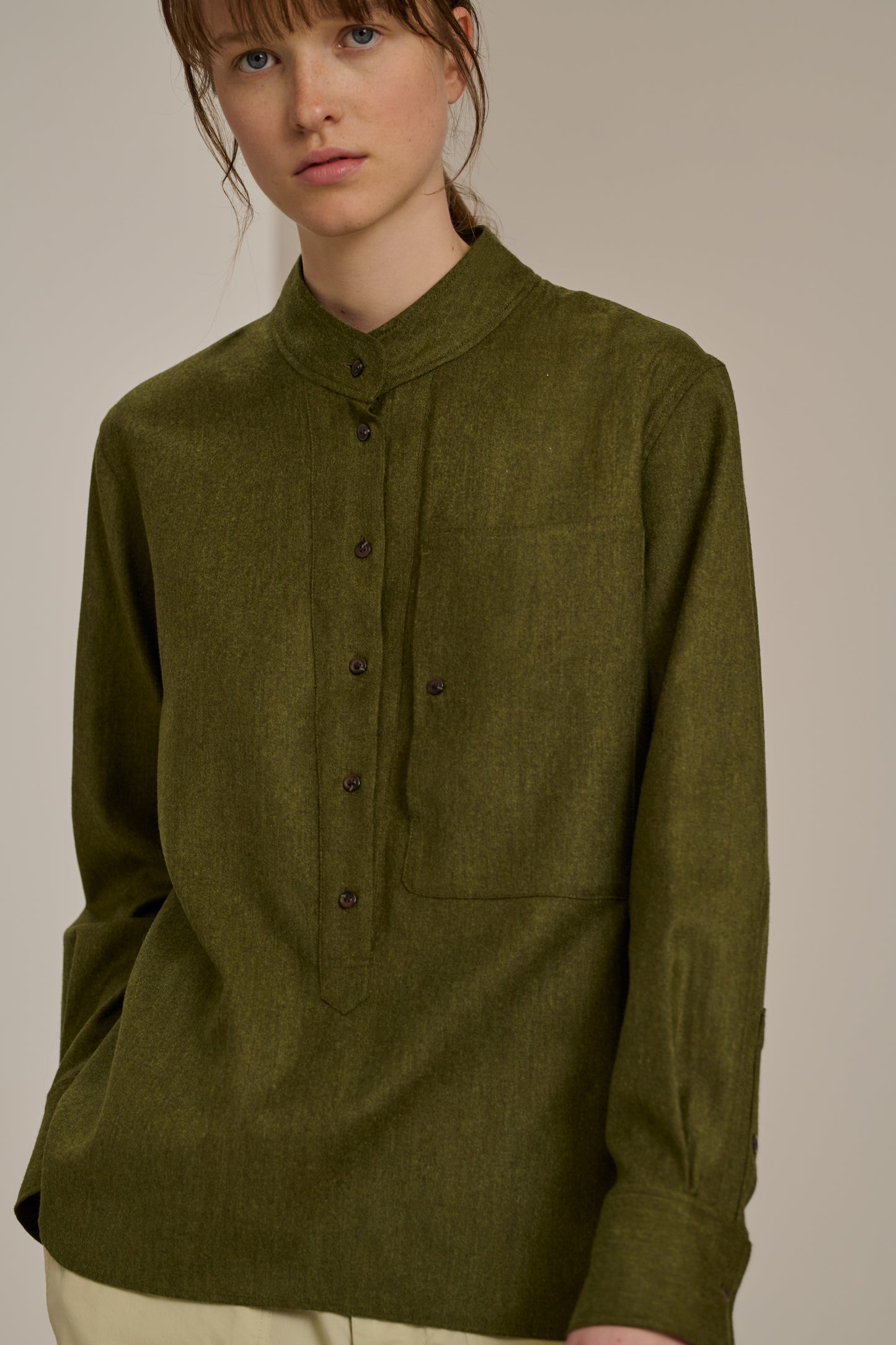 Light Heathered Flannel Blouse khaki