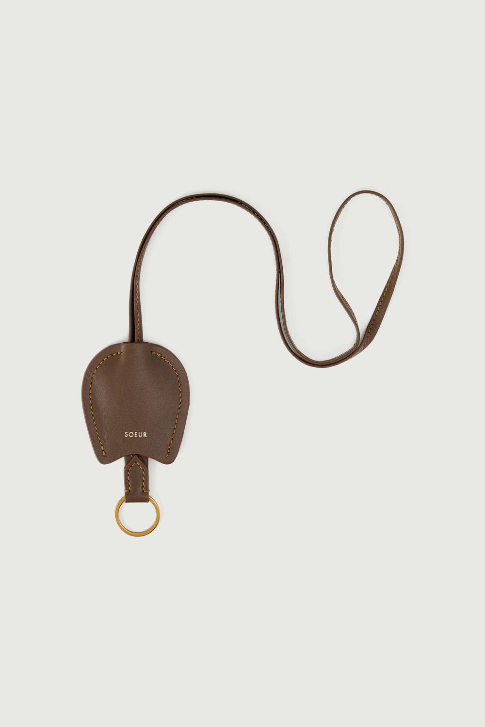 - Two-tone taupe/cognac leather keyring